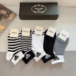 A box of 5 pairs of Prada socks (Ddd packaging included). New Prada socks, pure cotton fabric, classic triangle logo. Stylish and versatile, you deserve to own them! DDD