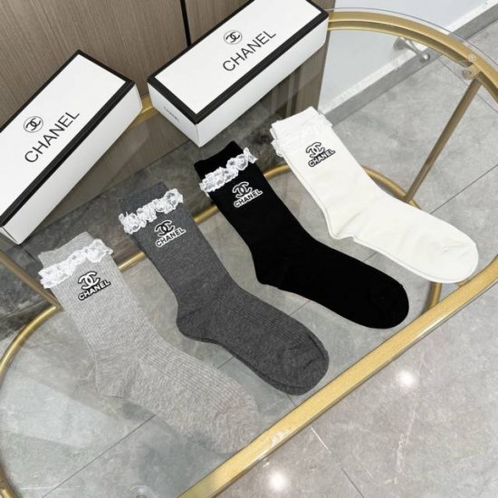 Comes with packaging, one box contains four pairs of high-quality Chanel socks~