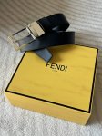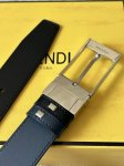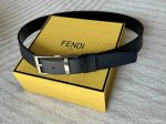 Fendi Men's Business Casual Reversible Waistband, 3.4cm Wide, Black and Blue Double-Sided Imported Cowhide Leather, Simple and Versatile Pin Buckle. DDD