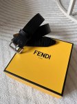 Fendi Men's Casual Leather Waistband (3.4cm), same style as in Fendi boutiques. Made of white grained calfskin with an Ff pattern and embossed natural rubber stripes. Silver-tone metal accents. DDD