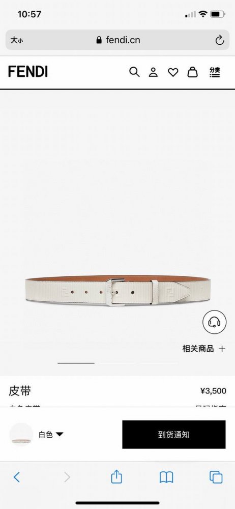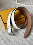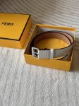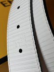 Fendi Men's Casual Pin Buckle (same style as in Fendi boutiques), 3.4cm wide, white grained cowhide leather with a nubuck leather lining, featuring the classic Ff pattern and embossed natural rubber stripes. DDD