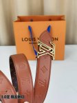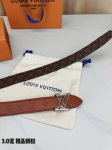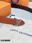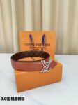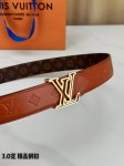 Lv 3.0Cm multi-color leather belt in burgundy, brown, and black embossed leather, reversible design. Features a gold and silver two-tone steel buckle, a narrow 3.0Cm design, and a classic pattern embossed on the belt. Comes with a signature orange gift box, a perfect finishing touch to any everyday look, showcasing refined and luxurious taste.