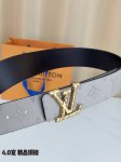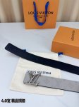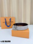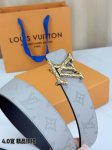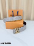 Lv 4.0Cm Brass Buckle Leather, grey coated canvas, embossed with the classic Monogram pattern. Features a five-color engraved brass buckle in gold, silver, black, antique white, or antique gold. Reversible leather, 4.0Cm wide design. Comes with an orange gift box and dust bag. Suitable for both business and casual occasions, showcasing understated luxury.