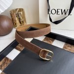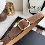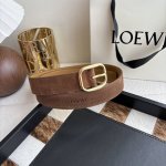 New Loewe soft grained calfskin leather belt, round buckle, 3.2cm wide, five-ho