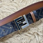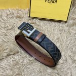 Picture Packaging +10 Ddd Fendi Boutique Same Style Width 4.0Cm Double Ring Reversible Belt Ff Snap Fastener Two-tone Cuoio Romano Leather Material Reverse Fabric with Tobacco Yellow and Black Ff Pattern Black Enamel Metal Finish Fashionable Classic Versatile Style DDD