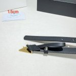 Prada Saffiano Leather Belt. Made of top-grain calfskin with a pure brass buckle, simple yet classic. Size: 1.5cm. Colors: Black, tan, burgundy, gold, silver buckle.