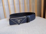 Prada's latest double-sided pebbled belt from their boutique collection. This versatile accessory can be paired with the triangular logo, its universally flattering, minimalist silhouette showcasing a unique and modern style with exquisite craftsmanship. Width: 3.5cm DDD