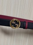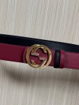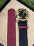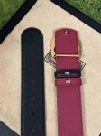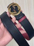 This eye-catching new men's belt is part of the 2026 Early Spring collection. The buckle features a pin for easy flipping and interlocking double-G shaped hardware. The ruthenium-toned finish provides a shimmering effect, adding a unique charm to the design. One side is black leather, and the other is burgundy leather, 4.0mm wide.