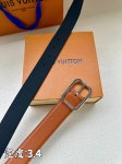 3.4" wide: This Taurillon leather belt features a metal belt loop with an LV logo, creating a calm and understated gentleman's style. Taurillon leather lining. Buckle edging with the Louis Vuitton logo.