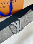4.0 Wide Lv Taurillon Reversible Belt features two sides, one in grained Monogra