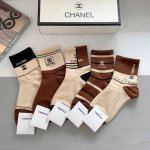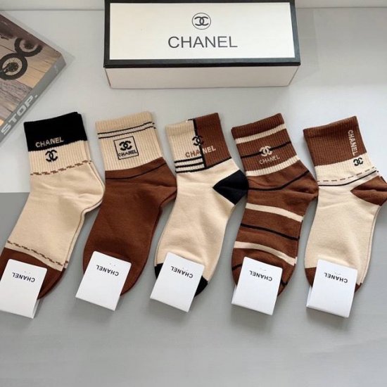 A box of 5 pairs of Chanel classic socks, high-quality pure cotton, soft and sup
