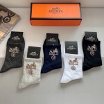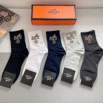 A box of 5 pairs of Hermes high-quality mid-calf socks, including packaging. Sup