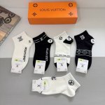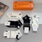 A box of 5 pairs of Louis Vuitton mid-calf socks with packaging. Made of pure cotton, these are a must-have for trendsetters. Classic logo mid-calf socks, stylish and versatile! You deserve to own them! Super soft combed cotton material, comfortable and breathable, a fashionable and versatile style.