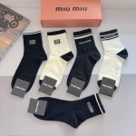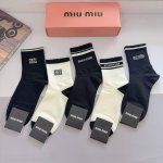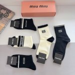 A box of 5 pairs of Miumiu men's mid-calf socks with packaging. Made of pure cotton, a must-have for trendsetters. Classic lettering, stylish and versatile design. You deserve to own them!