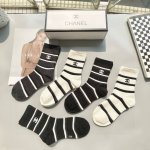 Comes with packaging, 5 pairs per box. High-quality Chanel classic mid-calf soc