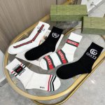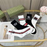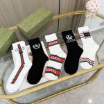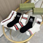 A box of five Gucci socks with packaging. A popular Gucci item, now available! These new Gucci scented socks are a perfect replica from the official store. Made of pure cotton, they are incredibly soft and comfortable. The classic gold-threaded double G logo on the ribbed cuff is super eye-catching. A super trendy item on Instagram, perfect for a high-fashion look. A must-have for fashionistas, super easy to match!