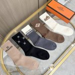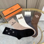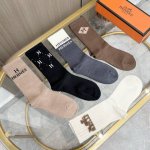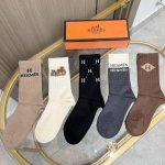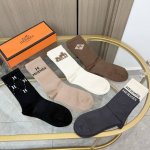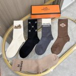 A box of five Hermer classic mid-calf cashmere socks, including packaging. Made of cashmere, these socks are a new arrival, just like in boutiques. The socks feature the full "H" brand name in jacquard pattern on the body, and the jacquard "H" logo at the cuff is particularly eye-catching. Made of pure cotton, they are incredibly soft and comfortable to wear. A super popular item, perfect for a high-fashion look, and a must-have for trendsetters. (
