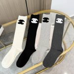 A box of four pairs of Chanel socks with packaging. These super popular Chanel socks feature the same lettering as those on the official Chanel website. Recommended by celebrities and influencers on Instagram, they are extremely popular. Made of pure cotton, they are lightweight, soft, and breathable, suitable for all seasons. A must-have for high-end European and American street style.