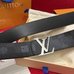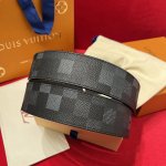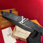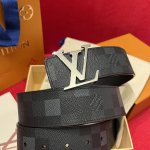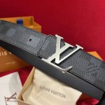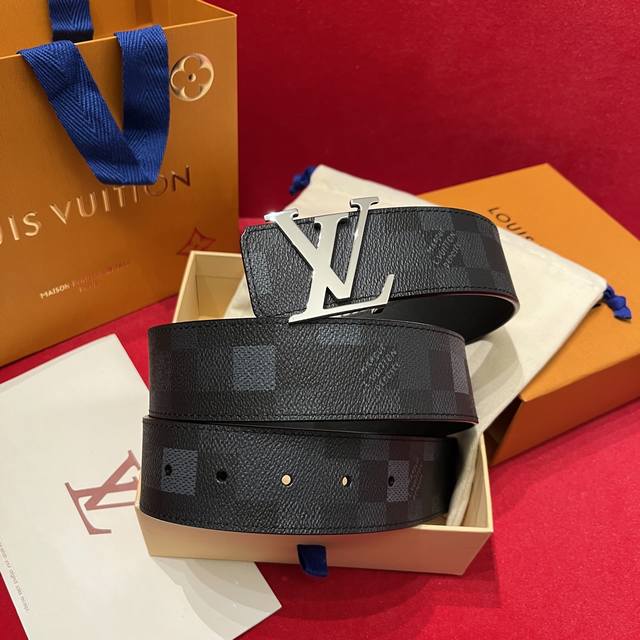 A new belt for trendy men. LV New. 4cm wide. Made of custom canvas. Made of pure black calfskin leather. Features a reversible buckle in the same color as the belt.