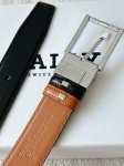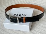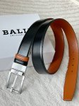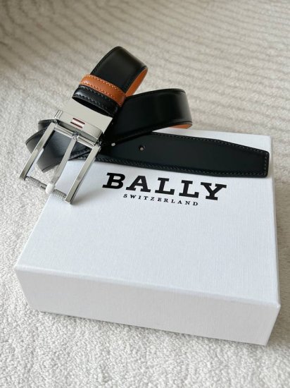 Bally double-sided leather belt, 3.4cm wide. A striking contrast of black and brown, this belt exudes both sobriety and elegance. The metal buckle is sleek and refined, while the leather is refined and textured. It allows for effortless style transitions, perfect for business commutes or leisure travel. Wearing it adds a subtle touch of class and layering your outfit.