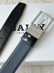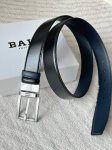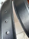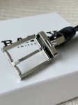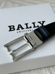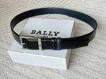 Bally double-sided leather belt, 3.4cm wide. A striking contrast of black and navy blue creates a calming yet elegant look. The metal buckle is sleek and refined, while the leather is delicate and textured. It allows for effortless style transitions, perfect for business commutes or leisure travel. Wearing it adds a subtle touch of class and layering your outfit.
