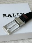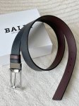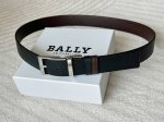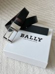 Bally men's casual business double-sided belt, 3.4cm wide, one side black, the other side dark brown, with a silver metal buckle, simple yet textured, suitable for business, leisure and other occasions.