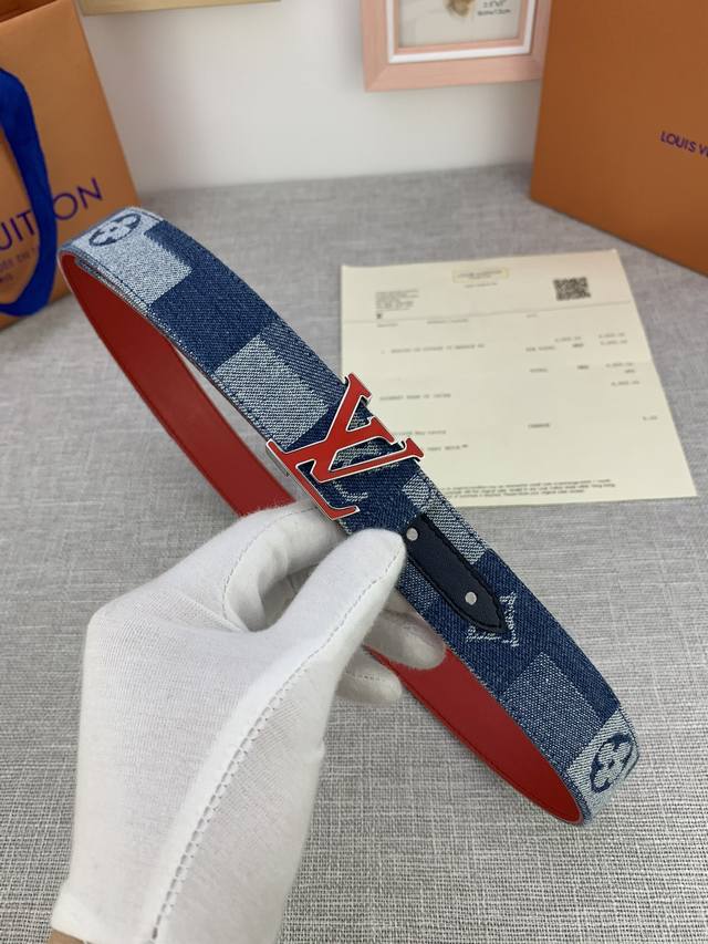 3.0 Wide Lv Iconic belt reimagines a classic with a trendy twist. Damier and Monogram motifs create a denim texture, while ungrained calfskin leather offers a sober and elegant look. 316 stainless steel buckle adds a refined touch.