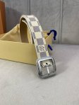 3.0 wide Lv Timeless belt features a slim leather strap with Elements logo pin b