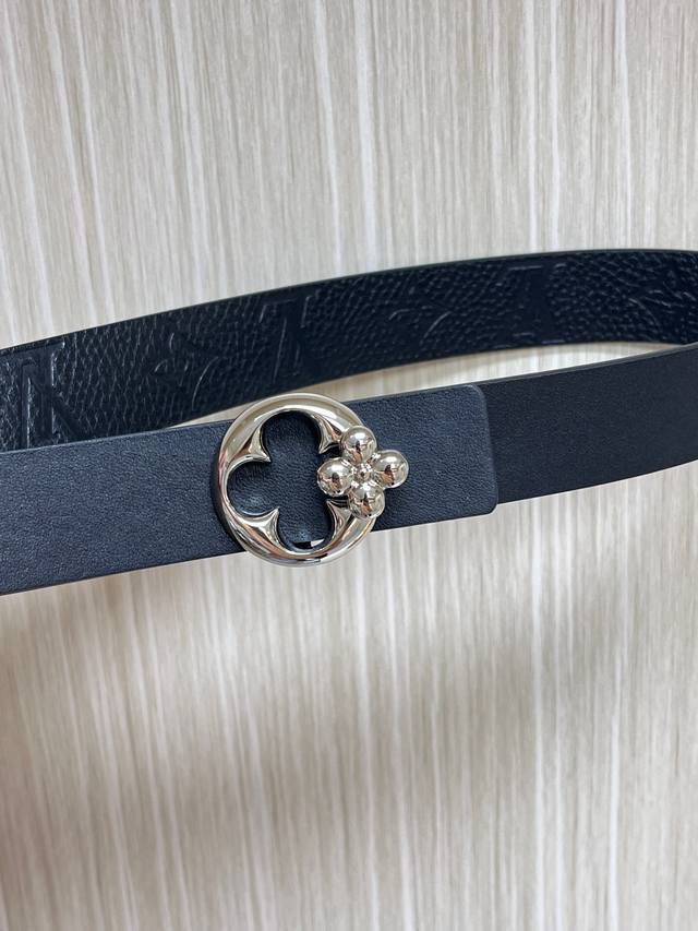 3.0 wide women's wireless belt, new style of the season, one side is black imported cowhide print, the other side is imported calfskin plain, with a fine steel buckle. Actual photo.