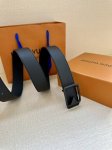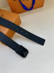3.4 wide Lv Trunk double-sided leather belt features a modern design that adds e