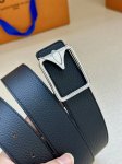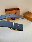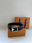 3.4 wide Lv Trunk double-sided leather belt features a modern design that adds elegance to any business or casual look. inscribed S-Lock buckle references brand's classic luggage elements.