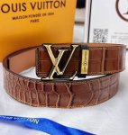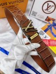 Belt: Louis Vuitton. Top-grade replica. Belt: 100% genuine cowhide. Double-layer, three-dimensional diamond-shaped design. 24K pure steel buckle. Non-fading imported crocodile leather. Hand-stitched, double-sided. Same quality as counter-mounted. Preferred packaging for gifts or personal use: Please identify the counter packaging as shown. Includes a hole puncher and UnionPay invoice. Width 3.8mm.