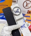 Belt: Lv. Louis Vuitton Top Replica - Belt: 100% imported genuine leather, guaranteed genuine leather. Carved, hollowed-out, three-dimensional logo, circular design. Vacuum plating. Never fade. 24K pure steel buckle. Double-sided calfskin graffiti hand-painted oil painting series. Same quality as the counter. Ideal for gifting or personal use. Packaging: Comes with a gift box as shown, a hole punch, and a UnionPay invoice. Width 4.0cm.
