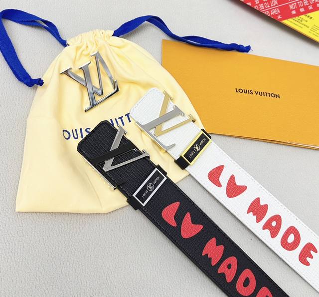 Belt: Lv..Louis..Top-grade original replica. Waistband: 100% top-grain cowhide, guaranteed genuine leather. 3D diamond-shaped 24K pure steel buckle with graffiti art, double-sided, counter-usable, same quality as other products. Preferred packaging for gifts or personal use: Please look for the counter packaging as shown. Includes a hole puncher and UnionPay invoice. Width 3.8mm.