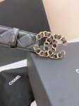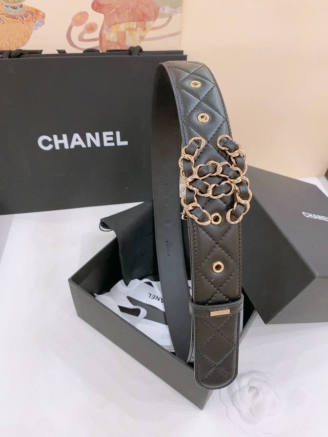 C Hanel Logo leather strap color Cc buckle brass gold metal 4.0Cm fine sheepskin belt feels soft and elegant