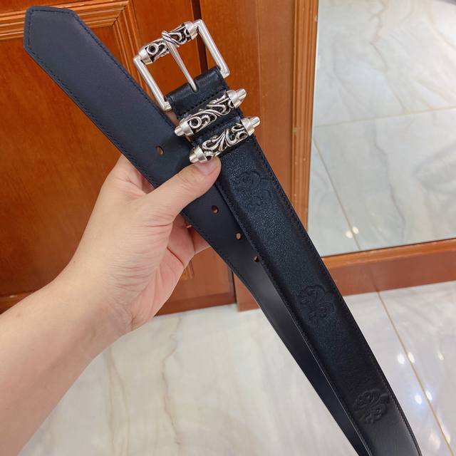 Rotating Roller Pin Buckle Belt (Fixed Style), brass silver-plated buckle head with imported waxed leather hot-pressed scout flower belt, very cool. Width 3.8Cm