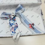 Dior's new fortune-bringing butterfly ribbon! This Mitzah scarf is crafted from white and blue silk twill and embellished with the Papillon Jouy print designed by Pietro Ruffo, showcasing the delicate butterfly motif in an elegant and dreamy design. The classic, slender silhouette features pointed ends, and the back is decorated with a contrasting jacquard stripe pattern embellished with flowers and the Christian Dior logo. It can be tied around the neck, wrist, or handbag to add the finishing touch to any fashion look. Made of white and blue fabric with the Papillon Jouy print, the back is decorated with a contrasting jacquard stripe pattern embellished with flowers and the Christian Dior logo. Pointed ends. 100% silk