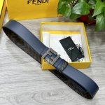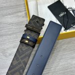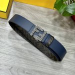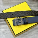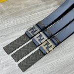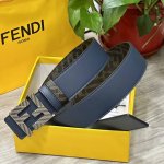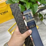 Fendi Fendi counter same style 4.0cm width double ring reversible belt Ff press stud buckle blue Cuoio Romano leather material reverse fabric with tobacco yellow and black Ff pattern square metal finish fashionable classic all-match style
