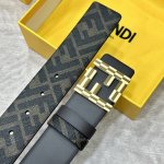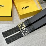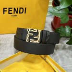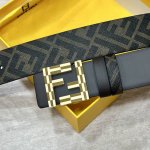 Fendi Same style as Fendi counters Width 4.0cm Double ring reversible belt Ff press stud buckle Coffee Cuoio Romano leather material Back fabric with tobacco yellow and black Ff pattern Black enamel metal finish Fashionable classic versatile style