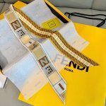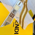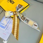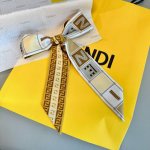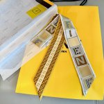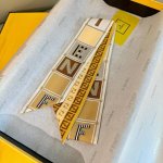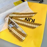 Fendi's most exciting silk scarf is finally here! This recognizable reversible headband scarf can be worn around your neck, wrist, or as a handbag accessory for a vibrant touch. Made of organic mulberry silk, one side features the ivory and beige Fendi O'Lock graphic print. The other side features the matching Fendi Mirror logo! Material: 100% silk! Size: 105cm x 5cm