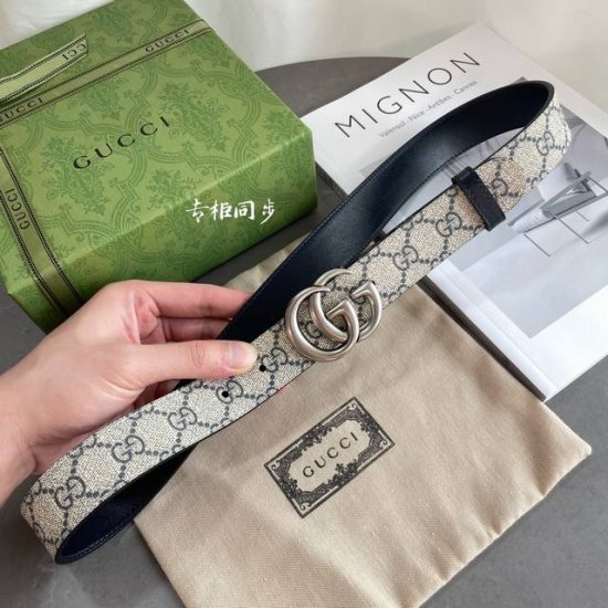 Gucci 2025 latest counter series Orchid style number 659418 92Tin 4075 Double-sided imported original waterproof PVC material more durable than cowhide width 3.0cm Rotatable bronze silver Double G buckle