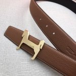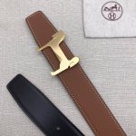 H double-sided original original quality imported first-layer cowhide khaki lychee pattern with black plain pattern 38mm with H pony gold and silver buckle