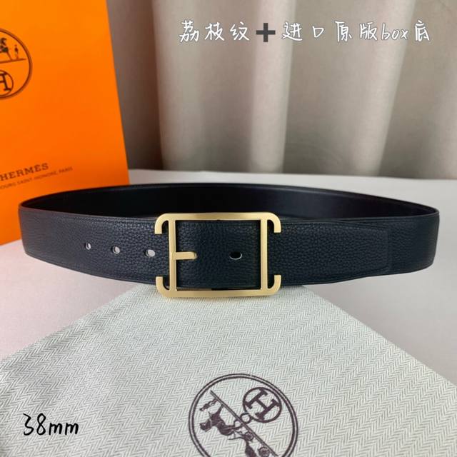 Hermes Men's Double-Sided Leather Belt, 38mm. Made of pressed, double-sided impo