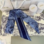 Jungle Zoo Ribbon Headband Christian Dior Size: 6 x 105cm Made of 100% silk, this mitzha scarf features Dior's signature Sauvage print. Crafted from ivory and navy silk twill, it features a slim silhouette with a pointed toe for a timeless and chic look. The back is embellished with a contrasting jacquard stripe pattern featuring the "Christian Dior" signature. Perfect for any outfit, it's the perfect finishing touch whether worn around the neck, wrist, or handbag.