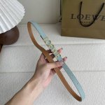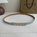 Loewe new smooth cowhide leather belt, decorated with metal Loewe logo, 1.5cm wide, five-hole adjustment. Color: Glacier Blue