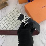 Lv Men's Flower Leather Belt 40mm Double-sided imported first-layer leather pres