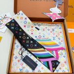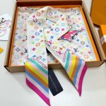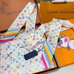 Lv official new silk scarf Murakami Takashi white tri-color most cost-effective single silk scarf, 18 momme silk headband this joint elegant and lively fashion