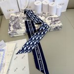 New D-letter This Dior Montaigne Mitzah headband scarf draws inspiration from the iconic Dior boutique address. The monogram and stripes are classic, with a slender shape and pointed ends. The back is decorated with a "Christian Dior" jacquard stripe pattern. It can be paired with various fashion styles. Whether tied around the neck, wrist or handbag, it is an ideal finishing touch! The back is decorated with a "Christian Dior" jacquard stripe pattern and pointed ends.