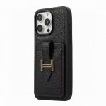 Hermes mobile phone case official website synchronized lychee grain leather card holder mobile phone case black orange