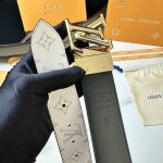 L0Uis Vuitt0N New arrival this season Donkey men's original belt Width 40mm Customized classic canvas black flower fabric lining Calfskin stitch bottom New mold New rotatable hardware Double-sided Low-profile versatile style